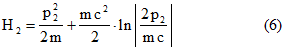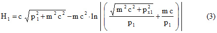 Что соответствует, согласно принятой терминологии, релятивистскому гамильтониану, если не учитывать логарифмическое слагаемое. Очевидно, что выражения (2) и (3) применимы в интервале