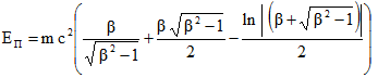 Математическое выражение для полной энергии в случае v>c (вывод приведен в [1]) имеет вид:
